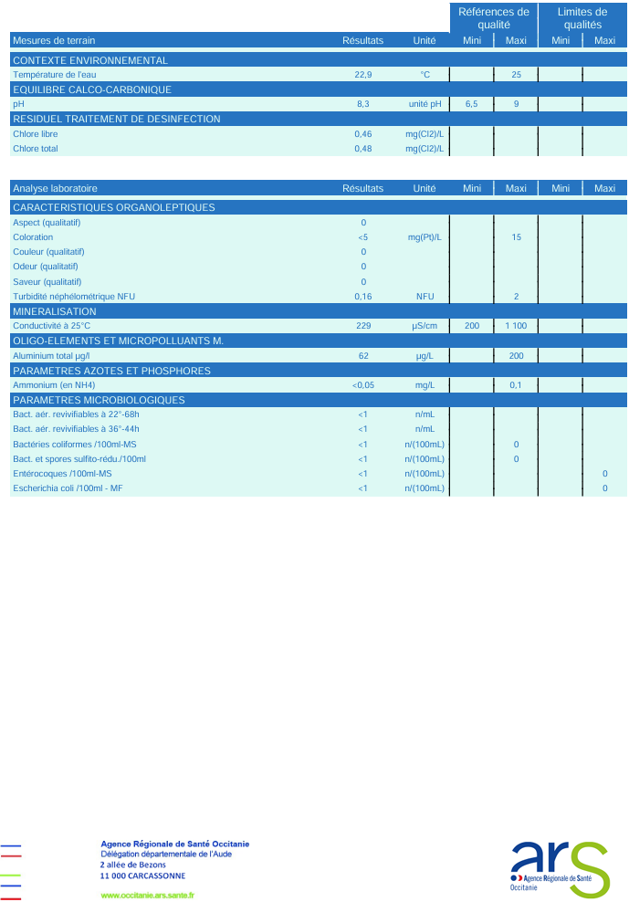 Rapport d’analyse de la qualité de l’eau (Septembre 2025)