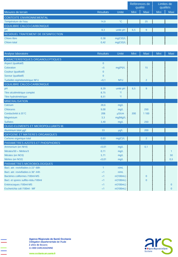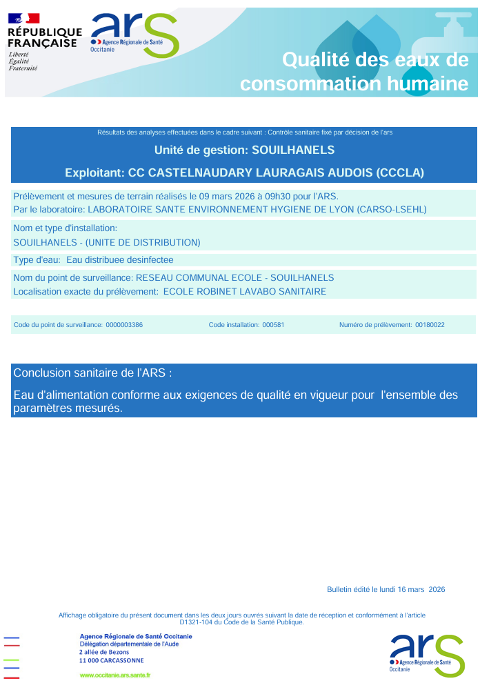 Rapport d’analyse de la qualité de l’eau (Mars 2026)