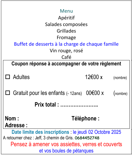 REPAS CHAMPÊTRE le 05 octobre 2025